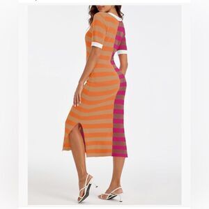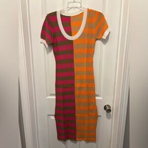 Wenrine Womens Short Sleeve Striped Dress Summer Knitted Scoop Neck Color Block