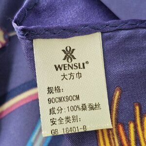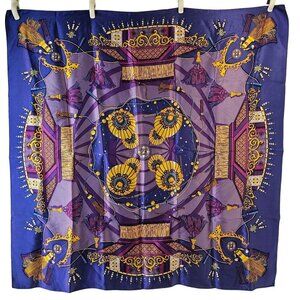 Wensli Mulberry Silk 35" Sq Scarf Vibrant Purples and Gold Hand Turned Edges