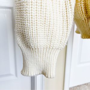 Winter ready soft, cozy, and comfy sweater in a woven cream color. Would pair well with a pair of jeans and boots!