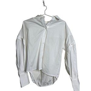 Were All Pretty Girls Shirt Womens XS White Oversized Cuff Poplin Long Sleeve