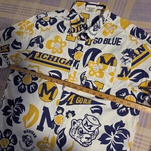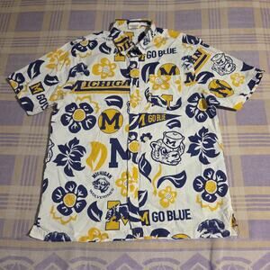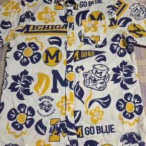 Wes and Willy Michigan Sports Fan College Vault Floral Button Up Hawaiian Shirt