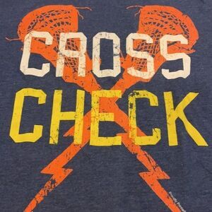 Wes and Willy Boys Cross Check Lacrosse T-Shirt. Made of cotton & polyester. Gently worn. Size 5.