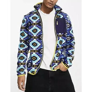 Wesc Moritz Aztec Fleece Jacket Zip Southwestern Blue Yellow Unisex medium NEW.