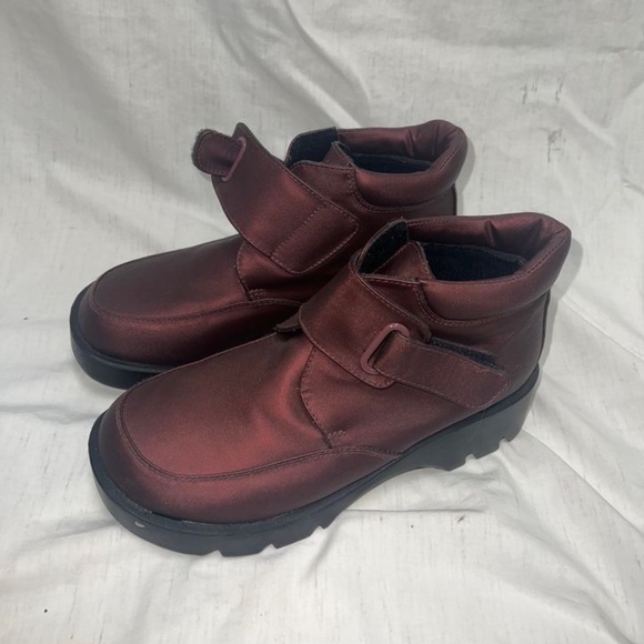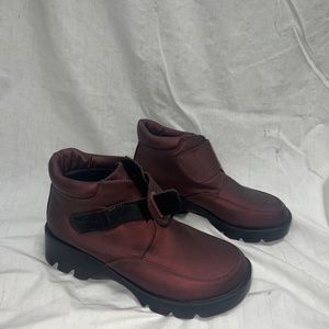 Wesley & Co. (Women's Size 7) Dark Brown/Maroon Ankle Boots with Velcro Strap