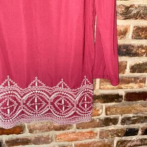 West 36th Maroon Red Embroidered Long Sleeve Tunic Top Women's Size Small