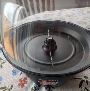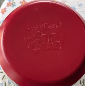 West Bend Stir Crazy Popcorn Popper with a red and black design. Perfect for making delicious popcorn at home.
