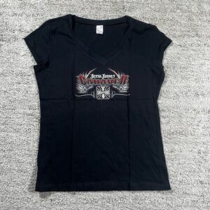 West Coast Choppers Jesse James Cadaver Women’s V Neck Tee T Shirt in new condition. Brand new, no tags. Size women’s large. Pit to pit 17”. 2 available.