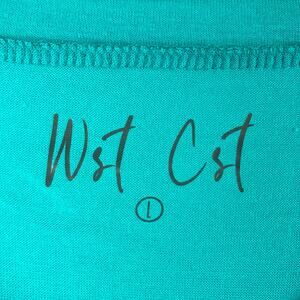West Coast Womens T-Shirt Large Teal Blue Neck Short Sleeve Tee Nordstrom NWT