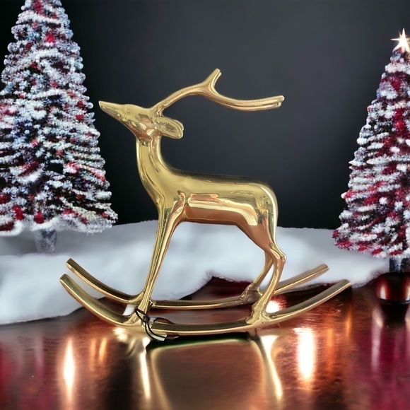 West Elm Brass Holiday Decorative Rocking Reindeer