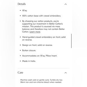 Accommodates an 18"sq. Pillow Insert.