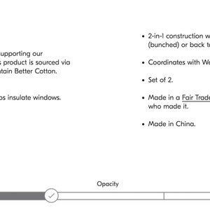 From West Elm: We reimagined Egyptian patterning to create the intricate motif on our Echo Print Curtain. The opaque fabric blocks out most light and helps keep the cold air out. Made in a Fair Trade Certified™ facility, benefitting the workers who make it.