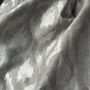 West Elm Grey Shine Ikat printed panel curtains. Set of Two (2). Easy hidden tab or rod pocket option. Semi-sheer. Clean. Smoke free home. Last photo is a stock image and is only to show a good image of how the curtains look through the rod. (I have a total of 4 panels for sale if you need more than two.)