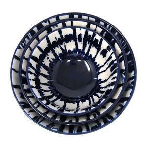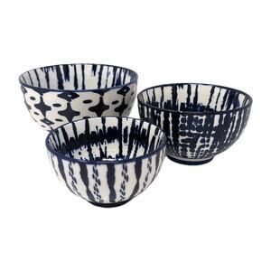 Three's a charm! Whether you use the gorgeous tie-dye bowls as home décor or to serve your favorite snacks, this set is sure to impress your guests. Dimensions: Small bowl (3.5" diam. x 2" h - 3 fl. oz.) Medium bowl (4.4"diam. x 2.5" h - 5 fl. oz.) Large bowl (5 "diam. x 3" h - 8 fl. oz.) MATERIALS: Ceramic CARE INSTRUCTIONS: Microwave and dishwasher safe No chips, cracks, or crazing