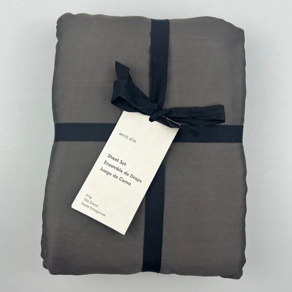 West Elm KING Silky Tencel Lyocell Sheet Set SLATE GRAY 320 Thread Count NWT
