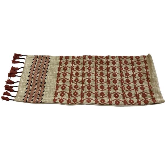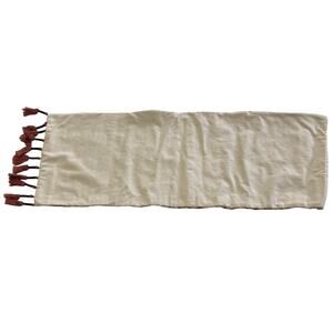 West Elm Lumbar Woven Pillow Cover Cream & Terracotta Red Boho Tassels 13" x 33"