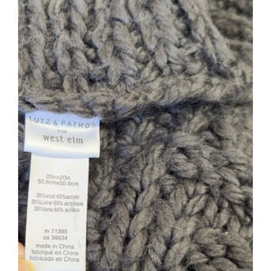 West Elm Lutz & Patmos 20"x20" Pillow Covers. The cable knit pattern and textured material made of a wool blend give them a plush and cozy feel, perfect for indoor use. The double-sided pillow covers feature a button closure and are square in shape.