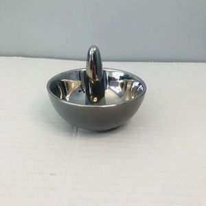 West Emory Ring Holder Ceramic Dish Matte Gray & Metallic Silver 3" x 3.5"