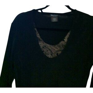 West End Petite Womens Large P 3/4 Sleeve slinky top shirt Pullover layered lagin look lagen VNeck