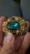West GERMANY Green LARGE Glass RHINESTONE ORNATE DOMED Filagree BROOCH UNSIGNED