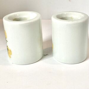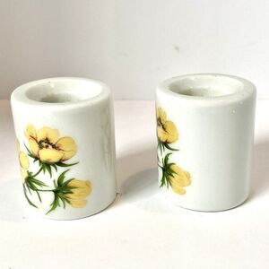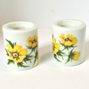 Vintage Funny Design Mini Candleholder ~ Set of Two ~ Blue and Yellow Flowers ~ 1 tall ~