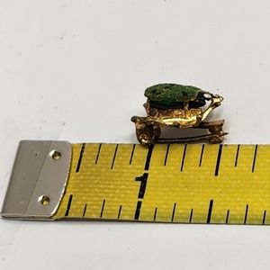 West Germany mini green gold tone insect bug pins, set of 2, hand painted green with black face and white eyes, faceted green crystal body, prong set stone, c clasp closure. Vintage Signed Costume Fashion Jewelry Tiny Petite Lady Bug