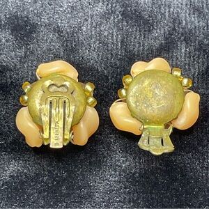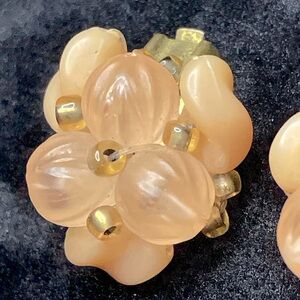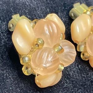 West Germany Vintage Peaches & Cream Gold Lucite Beaded Clip Earrings