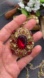 Stunning vintage filigree with pink enamel work, faux pearls and red glass stoned West Germany necklace unsigned. chain is 24 inches end to end and pendant is 2 and 1/8 down.