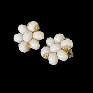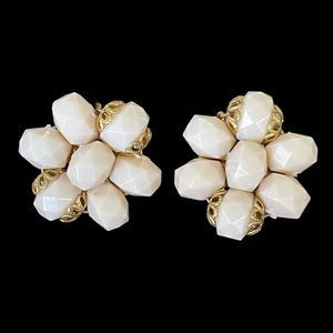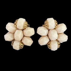 Vintage signed West Germany Pink Blush Cream faceted bead earrings