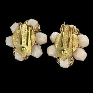 West Germany Blush Faceted Bead Clip On Vintage Earrings Signed
