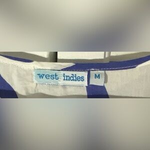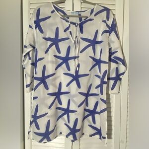 West Indies White with Royal Blue Starfish Tunic, Size M, Tie Neck, 3/4 Sleeves
