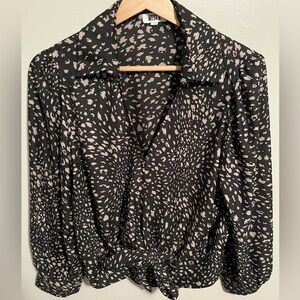 West K Tie Front Black and Cream Blouse Whimsigoth Streetwear Baddie Medium