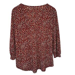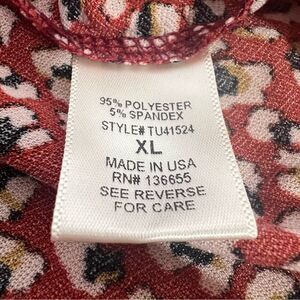 West Kei Animal Print Blouse Top Womens XL Red V-Neck Wrap 3/4 Sleeve Stretch