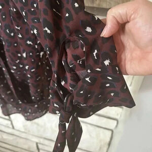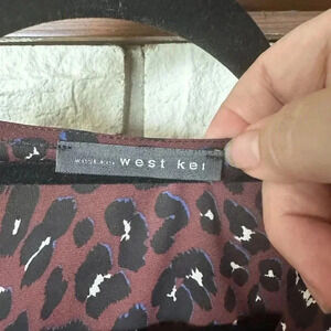 West Kei Leopard Cheetah Print Hi-Lo Blouse Size Medium Faux Wrap