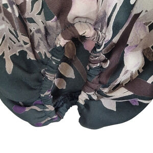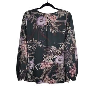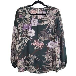 West Kei Oleksandra Flowy Crew Neck Blouse Large Dark Green Floral Lightweight