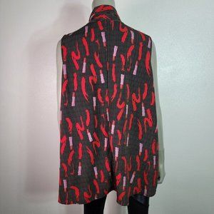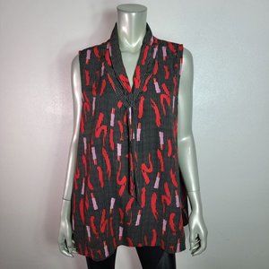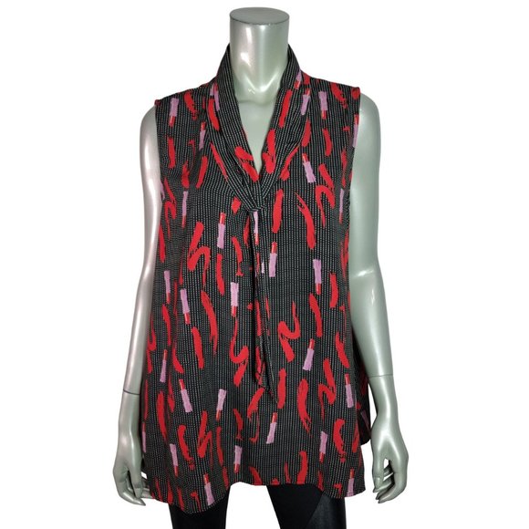 West Kei Top Plus Size 2X Lip Stick Print Lightweight Tie V-Neck Sleeveless Red Casual Pullover