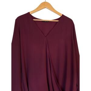West Kei Women's Long Sleeve Surplice Soft Hi-Low Pullover Blouse Size XXL Red