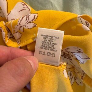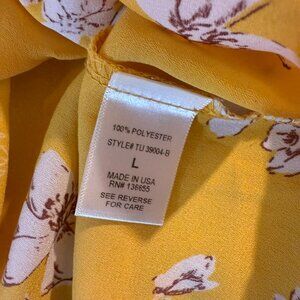 West Kei floral blouse - mustard/yellow with white flowers outlined in dark red. Women's size large. Only worn a few times.