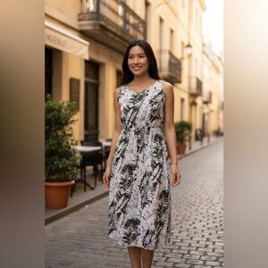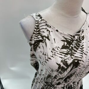 West Loop Sleeveless Sun Dress - Brown & White Palm Leaf Tropical - Size M NWT