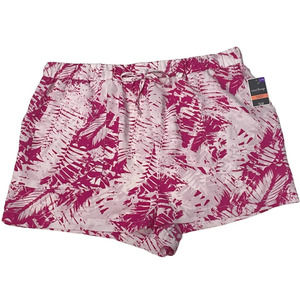 West Loop Womens Shorts Size L/XL Pink White Tropical Leaf Pull On Elastic
