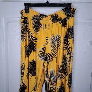 West Loop Yellow Leaf Patterned Palazzo Tropical Pants Size XL