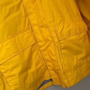 Bright yellow jacket by West Marine. Features a hood and multiple pockets.