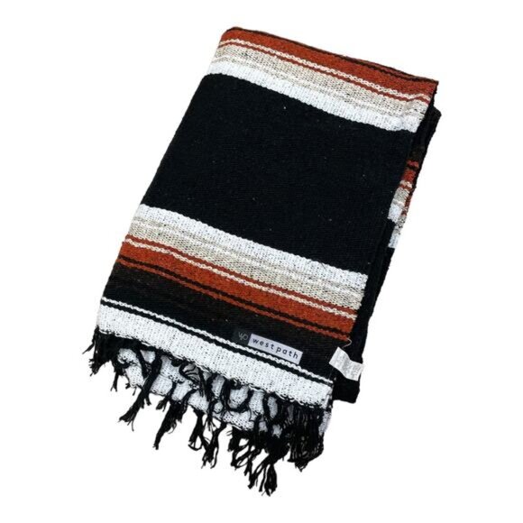 West Path Molina Indian Blanket Fringe Hand Woven Throw Picnic Yoga Black Orange. Brand new with no tag.