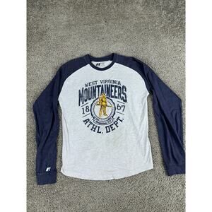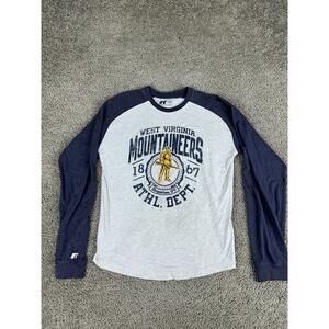 West Virginia Mountaineers Shirt Mens L Gray Blue Athletic Dept Long Sleeve