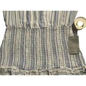 West kei Blue And White Flutter Sleeve Dress With Flounce And Smocking Size L