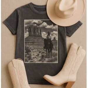 West of Melrose Grey Distressed Western Graphic Cowboy Desert T-Shirt