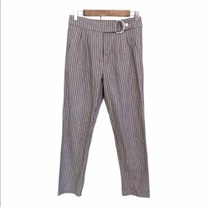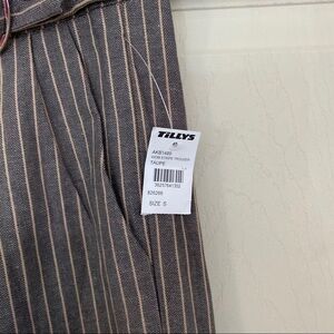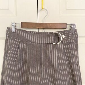 NWT West of Melrose Tillys Trousers, buckle and button front, straight leg, pinstripe, high rise, linen blend