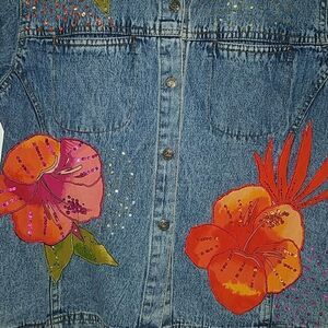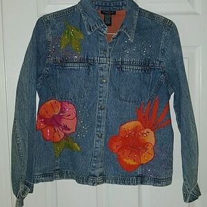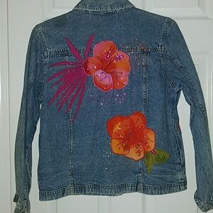 West End Petites Hibiscus denim jacket Sz. PM