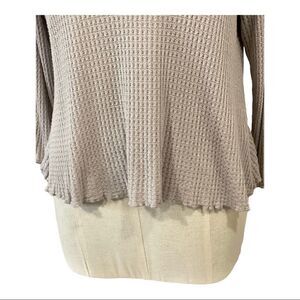 Solid Gray Color, Waffle Texture, Long Sleeve, Scoop Neck, Open Back with Tie Closure