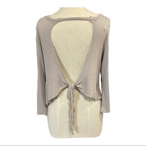 West Of Melrose Gray Open Back Long Sleeve Knit Top