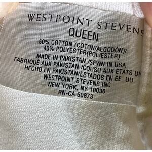 Cream colored flat sheet by Westpoint Stevens in good preowned condition. Light signs of use. No flaws.